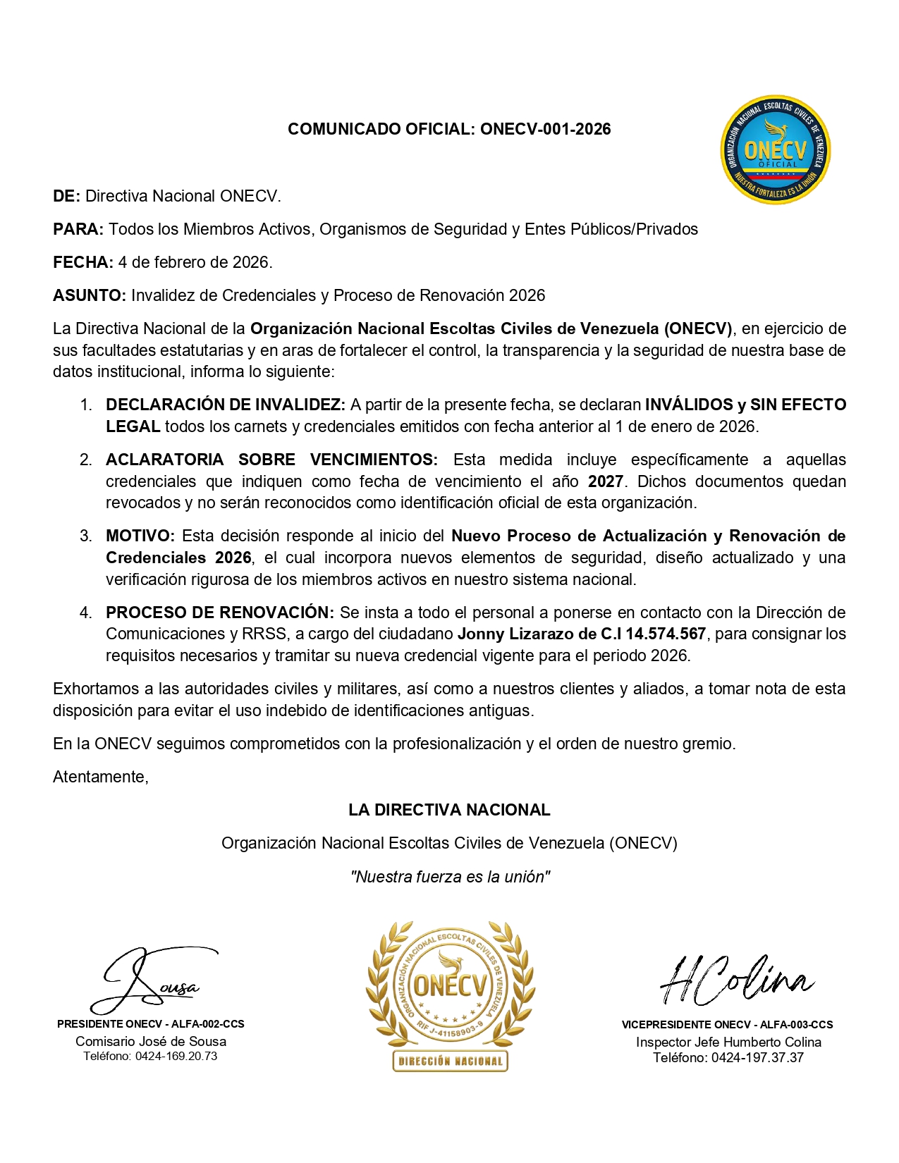Bienvenidos a la Organización Nacional Escoltas Civieles de Venezuela
